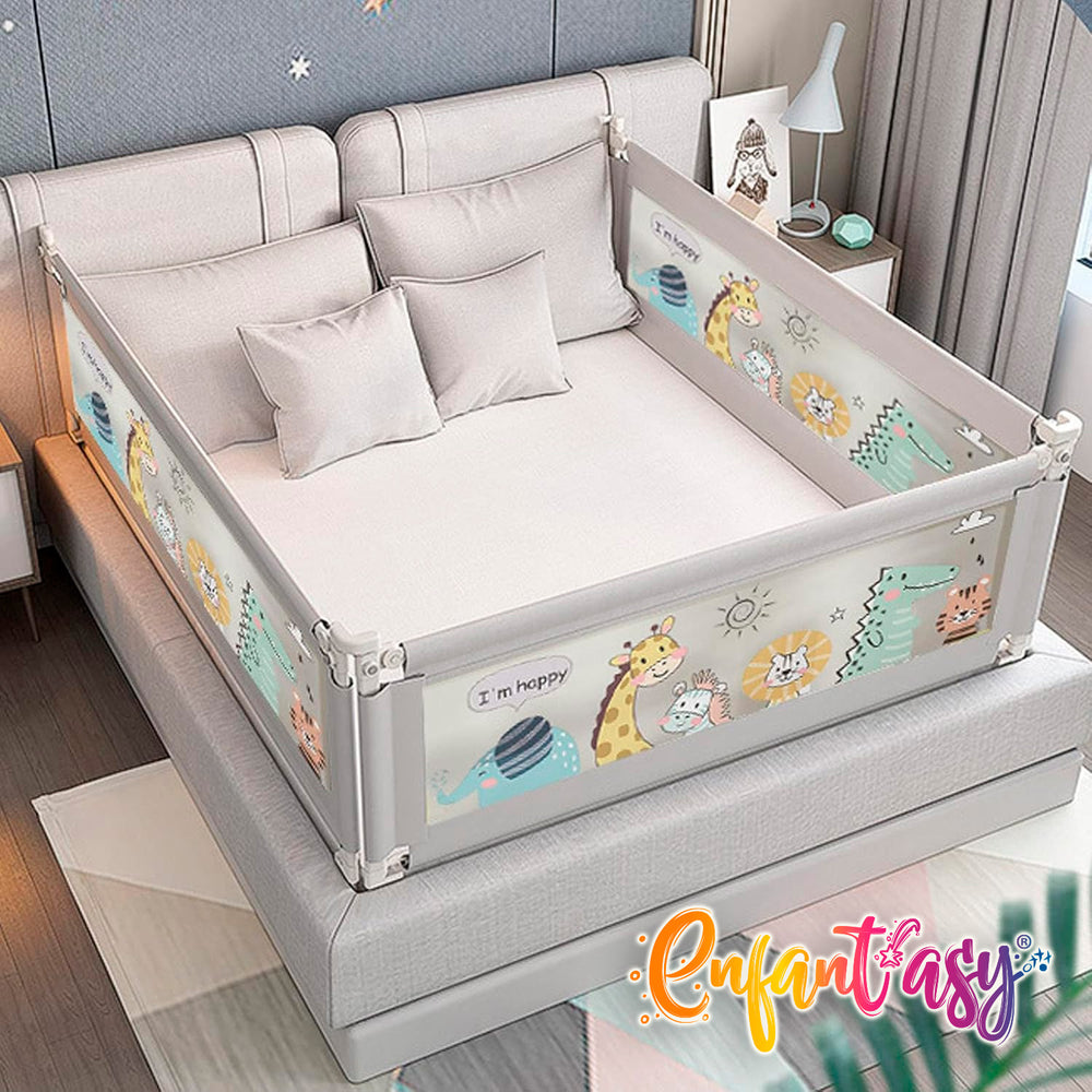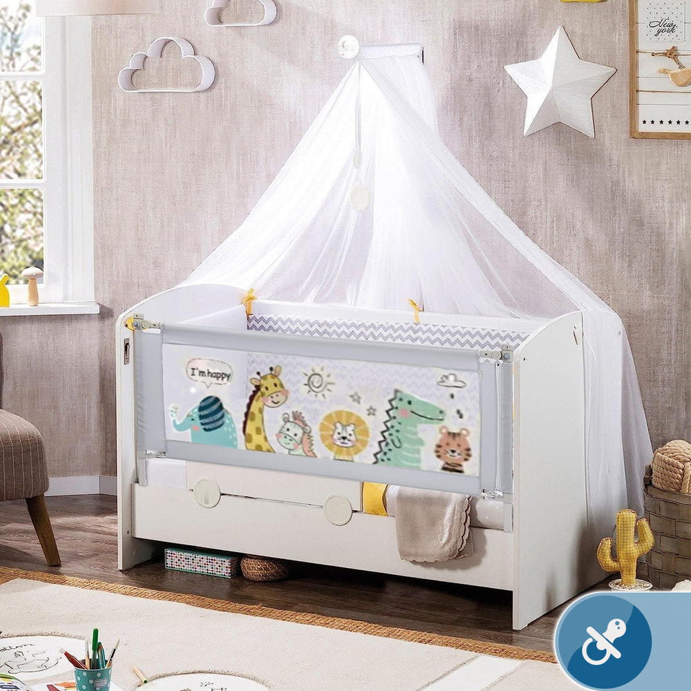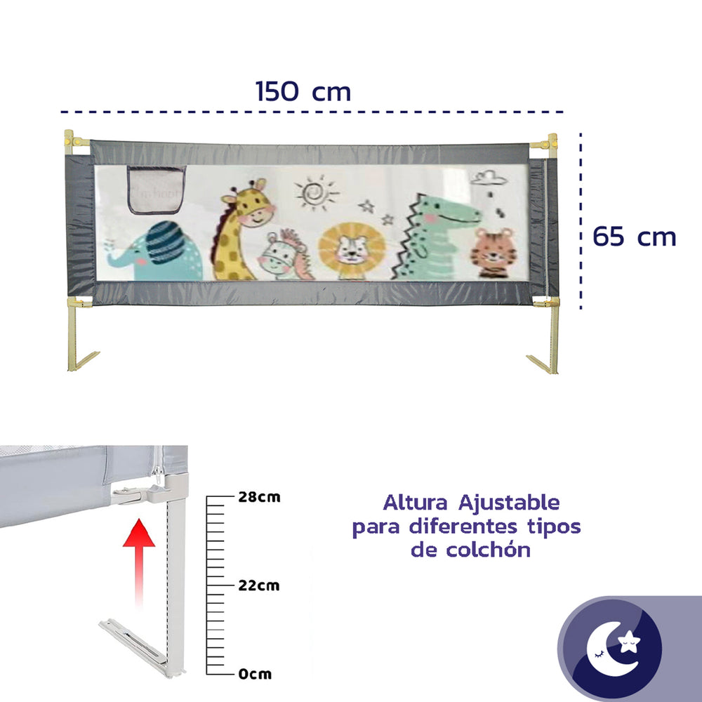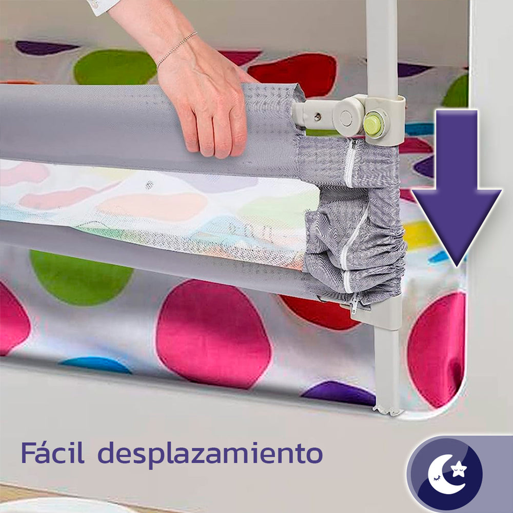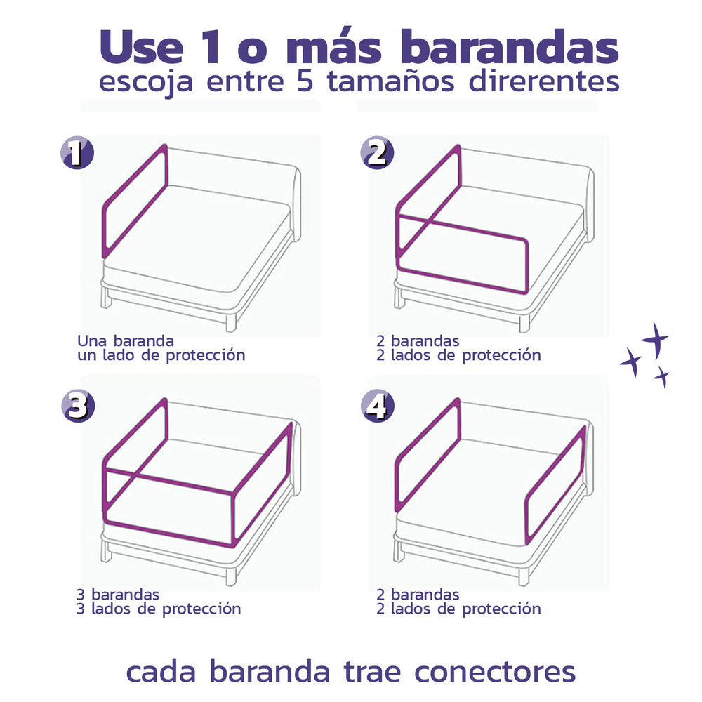 Baranda de seguridad para camas y cunas. Es ideal si no tienes cuna y deseas proteger a tu bebé de las caídas mientras duerme. El largo en 5 tamaños es más ancho que otras del mercado. Fácil de transportar, lleva siempre esta protección de cama en tus viajes.