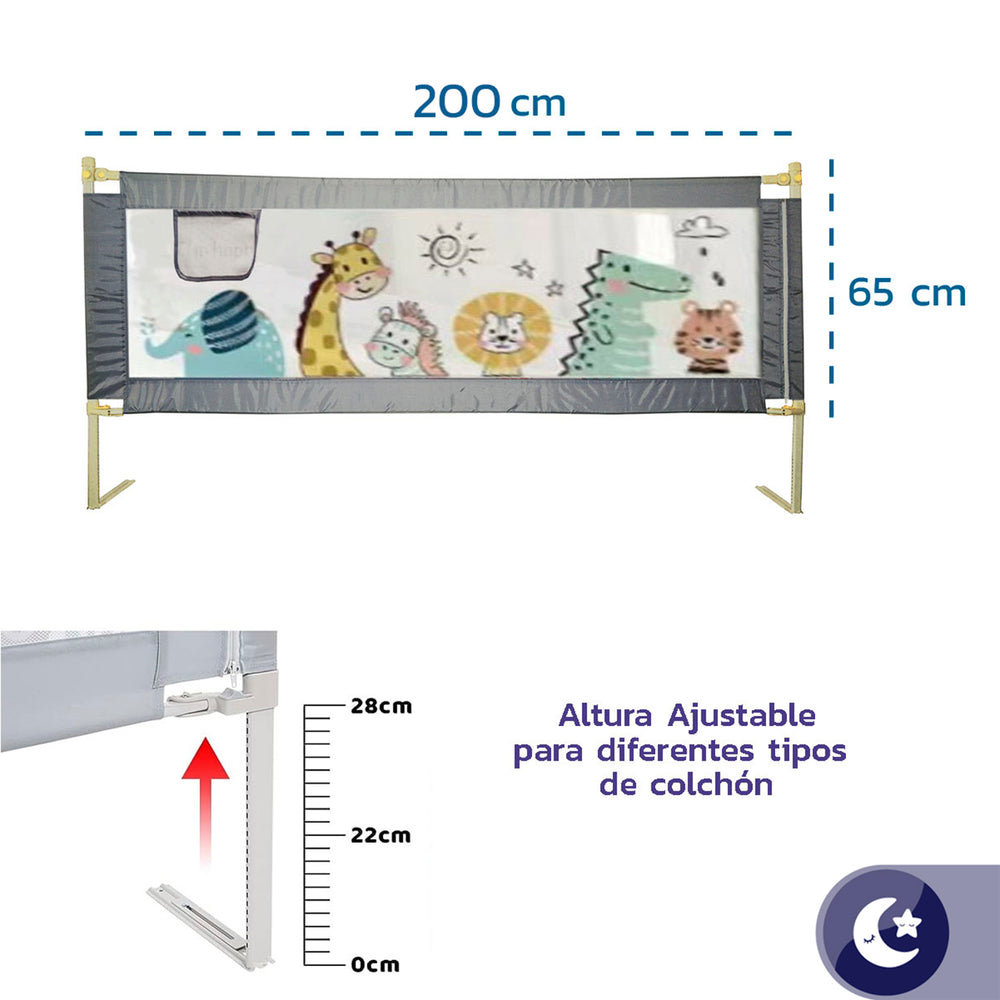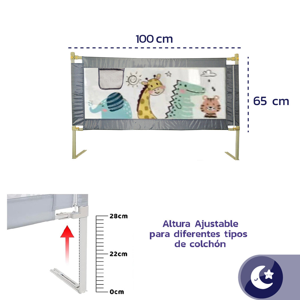 Baranda de seguridad para camas y cunas. Es ideal si no tienes cuna y deseas proteger a tu bebé de las caídas mientras duerme. El largo en 5 tamaños es más ancho que otras del mercado. Fácil de transportar, lleva siempre esta protección de cama en tus viajes.
