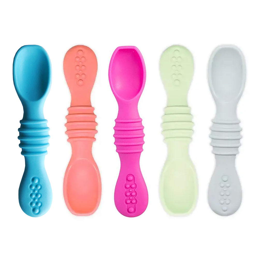 Fabricada en silicona grado médico libre de BPA, con bordes redondeados, mango estable que facilita su agarre y flexibilidad. Ideal como primera cuchara ya que por su material es muy suave con sus encías.