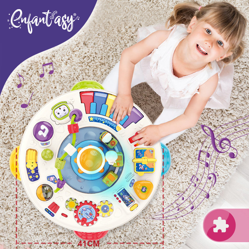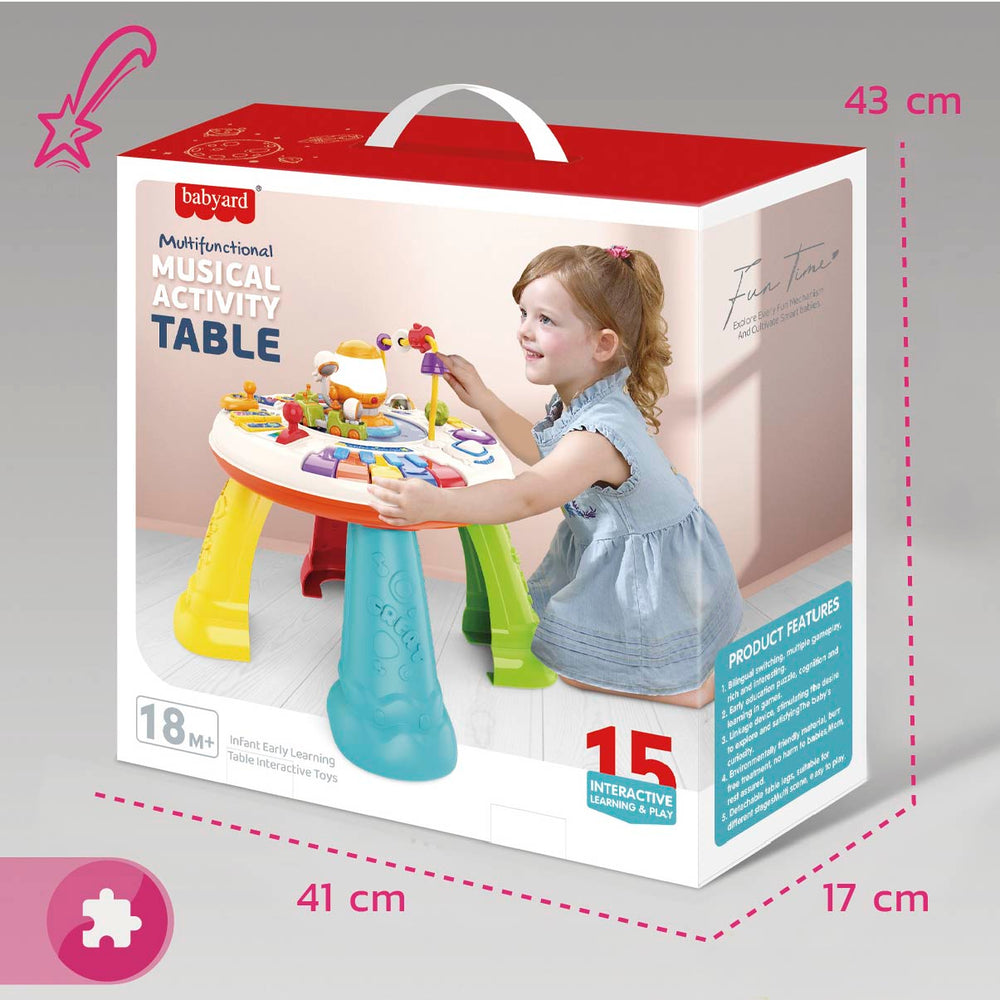 Nuestra mesa ofrece una amplia variedad de actividades diseñadas para entretener y enseñar a tu pequeño mientras juega. Con colores brillantes, formas llamativas y actividades interesantes, cada elemento de la mesa está pensado para despertar la curiosidad y la creatividad de tu bebé.