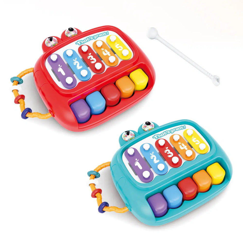Ya sea que estén tocando sus canciones favoritas o improvisando melodías propias, este xilófono ofrece una introducción perfecta al mundo de la música. ¡Haz que cada día sea una aventura musical con nuestro xilófono infantil de 5 tonos con anillos!