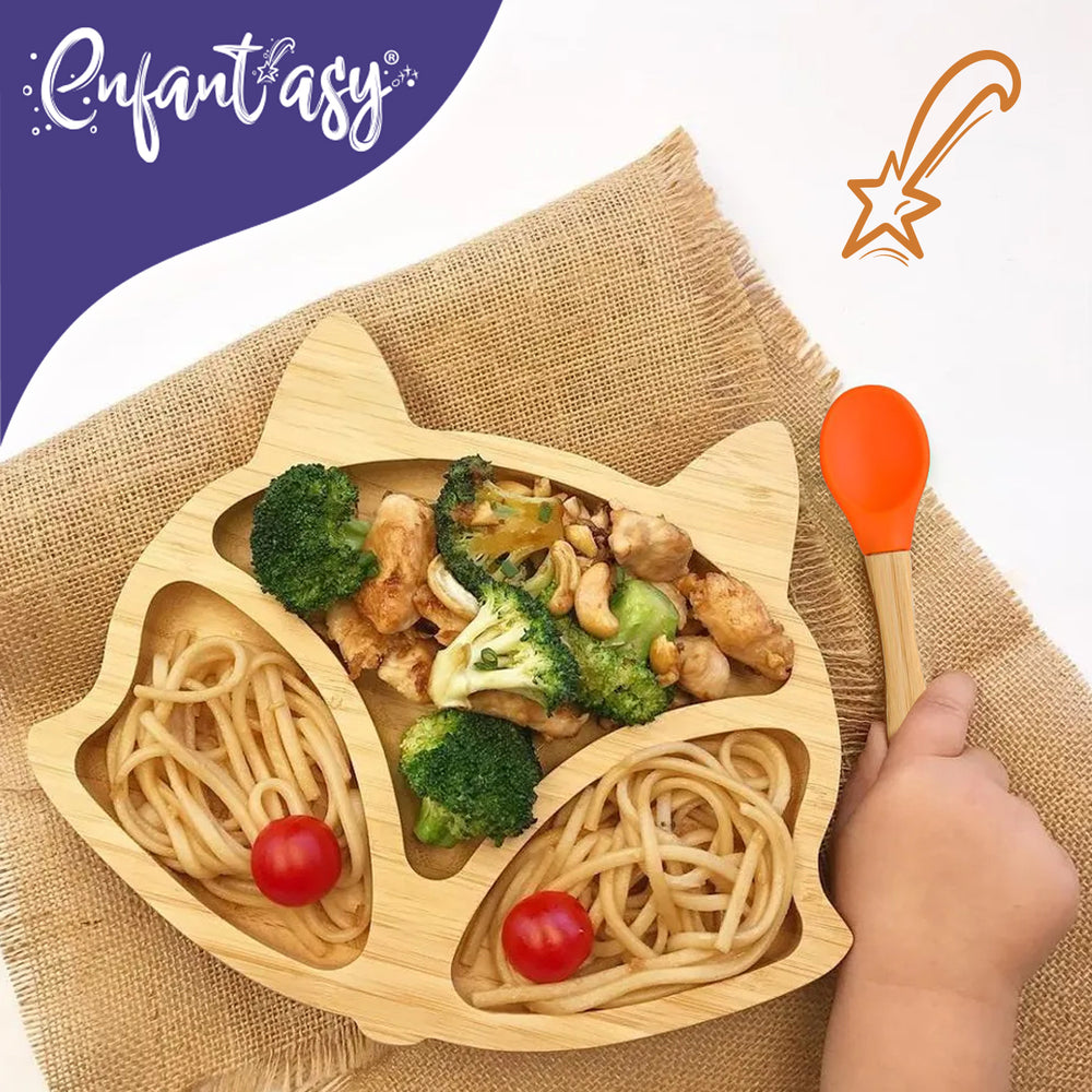 Espectacular plato en madera de bambú con chupa en silicona y cuchara en bambú y silicona. Viene en una espectacular caja. El complemento ideal para iniciar la alimentación complementaria y así mismo ayudar al medio ambiente ya que es un plato biodegradable en un 95 %. Lindos diseños, encuentra el que le guste a tu bebé.