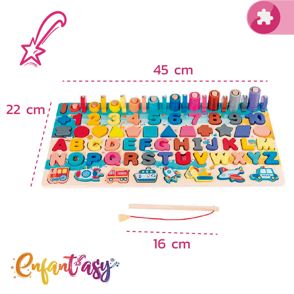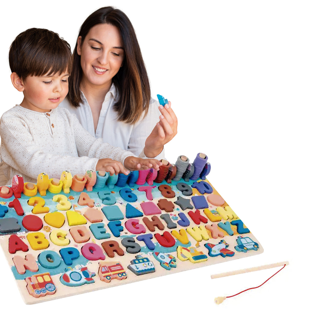 Nuestro encantador tablero no solo es una herramienta educativa excepcional para enseñar a tus hijos las letras del alfabeto, sino que también ofrece horas de entretenimiento estimulante. Cada pieza de madera sólida está bellamente diseñada y pintada con colores vibrantes, haciendo que el aprendizaje sea una experiencia visualmente atractiva y emocionante.